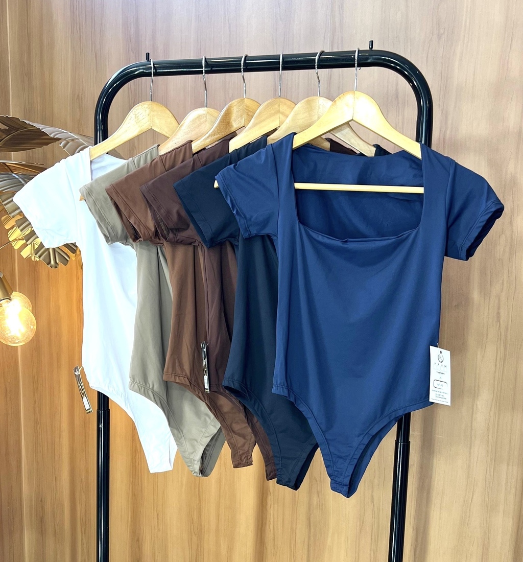 Body poliamida, não possui gancho embaixo, extremamente confortável, duplo na parte do seio.