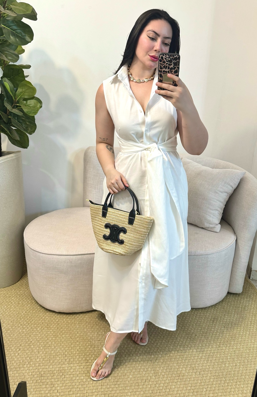 Vestido todo no tecido natural de viscose